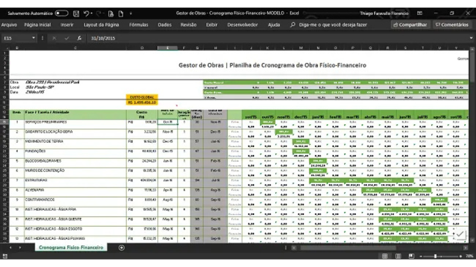 A Planilha Obra em Números é compatível com Excel e com outros programas que abrem planilhas, como Google Sheets e softwares similares.