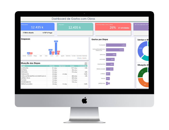 A planilha foi estruturada para facilitar o controle do orçamento e das etapas da construção, sem exigir conhecimento técnico ou tempo perdido montando planilhas do zero.