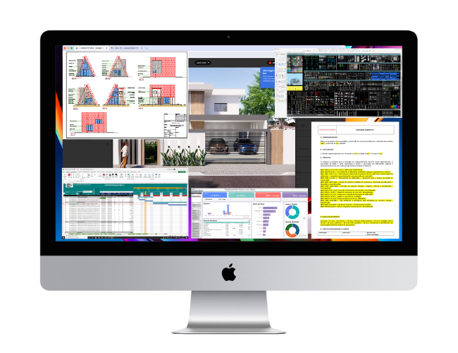 Ferramentas utilizadas no dia a dia profissional para orçamento detalhado, cronograma físico-financeiro, dimensionamentos estruturais e controle preciso das etapas construtivas.